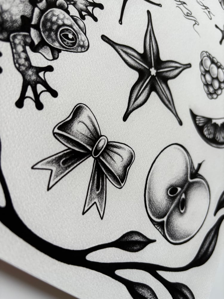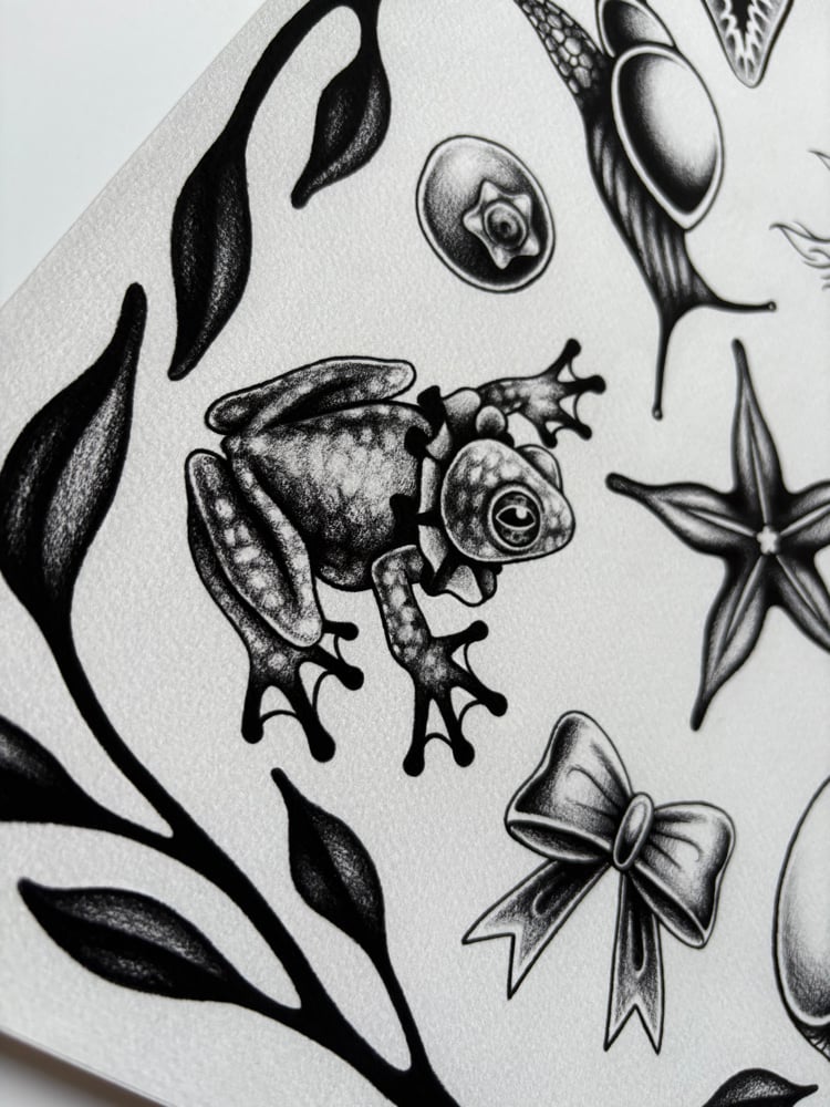 Black and Grey edition of the Froggy Flash Sheet! -11x14 inches -Epson Cold Press Bright Paper -305 gsm -Archival Inks