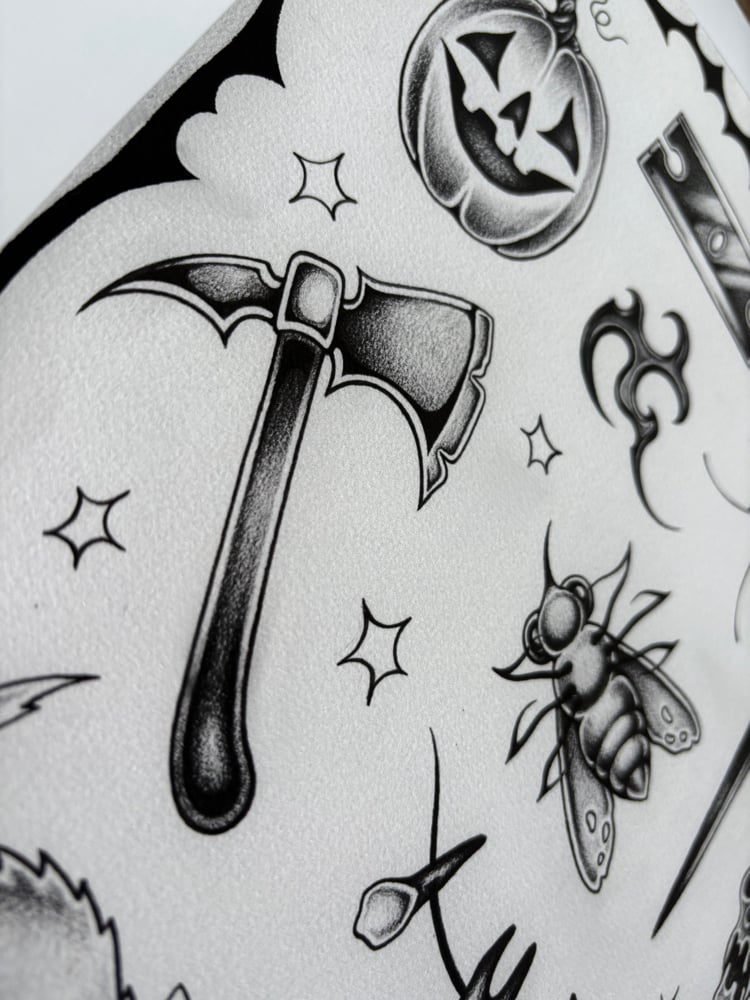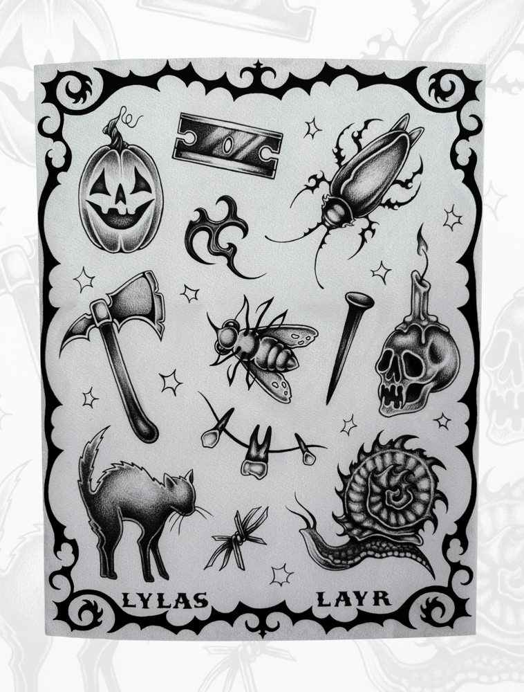 Black and Grey edition of the Spooky Flash Sheet! -11x14 inches -Epson Cold Press Bright Paper -305 gsm -Archival Inks